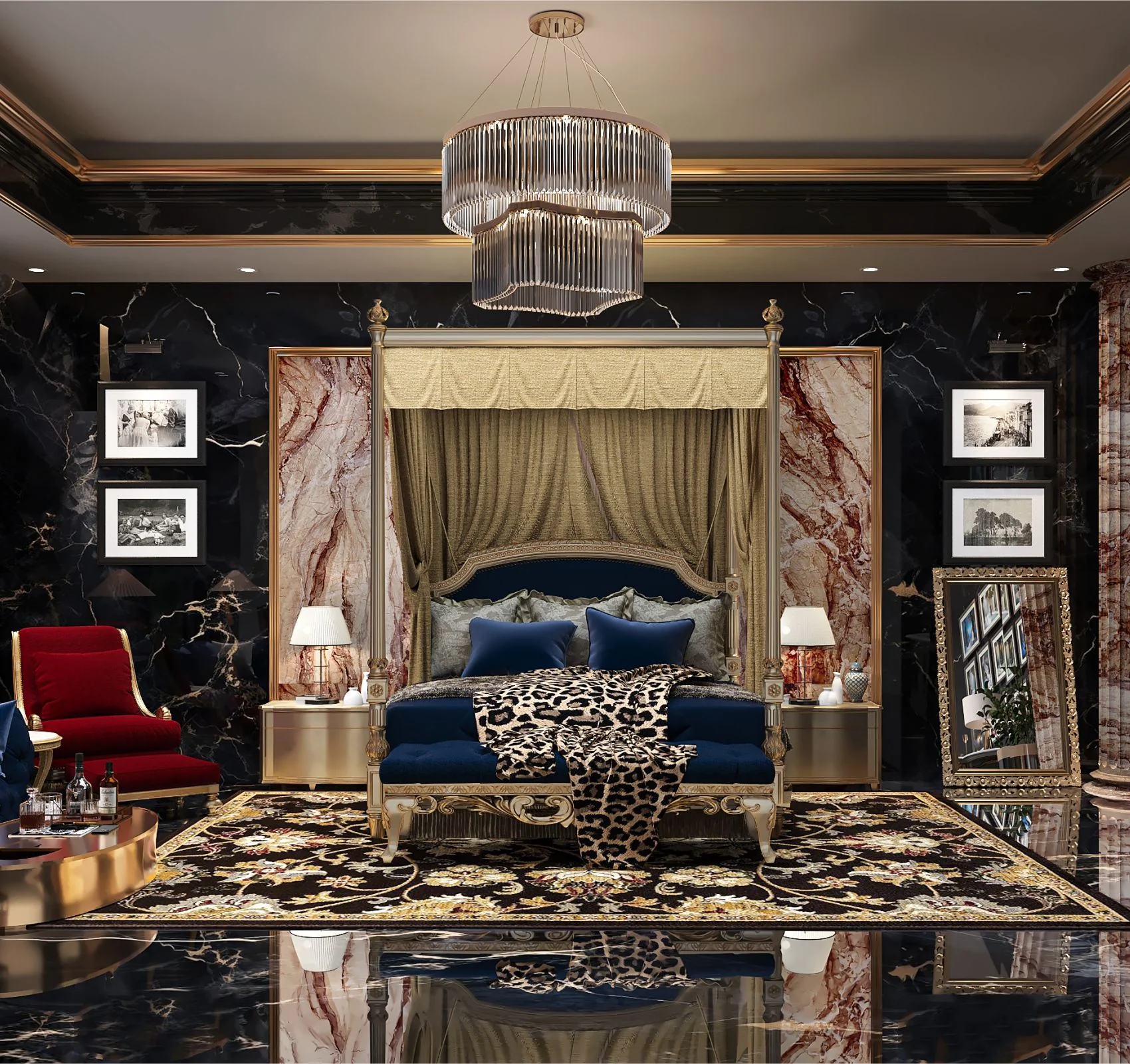 The impressive double-height entrance immediately captivates visitors, setting the tone for the villa’s refined elegance. Two sets of gracefully designed double columns frame the facade, enhancing the structure’s regal presence and adding a sense of classical symmetry.