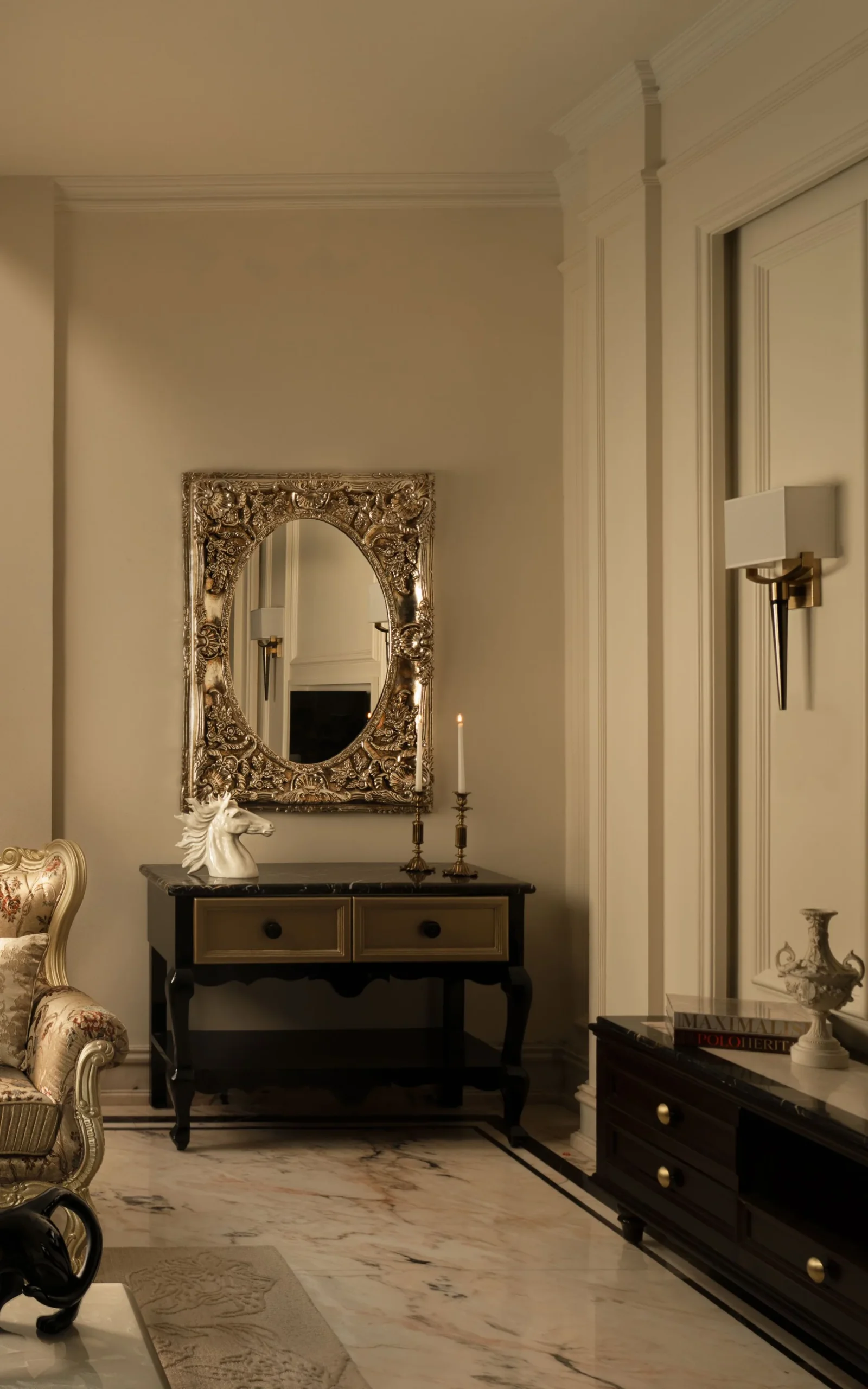 Drawing inspiration from the vibrant artistry of 1980s Rococo architecture and the timeless charm of Venetian homes, this residence stands as a testament to craftsmanship and vision. Every corner of the home reflects a meticulous interplay between heritage and modern sensibilities, resulting in an atmosphere that is both graceful and enduring.
